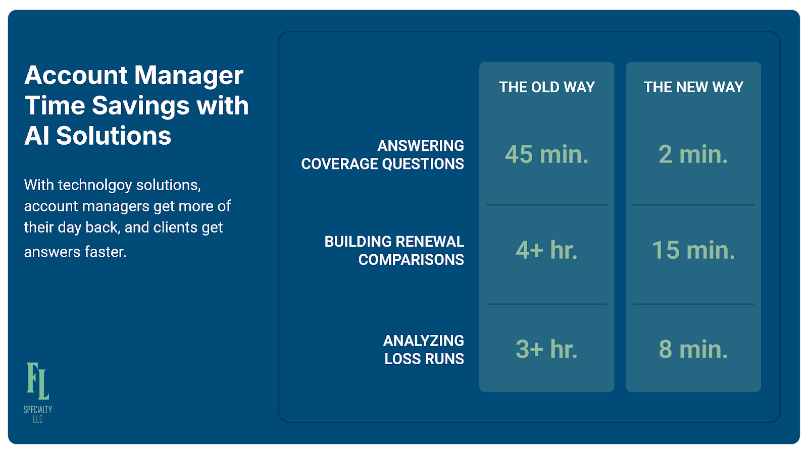 If 60% of your time goes to hunting for information and building comparisons manually, you're only operating at 40% capacity as an actual insurance account manager.